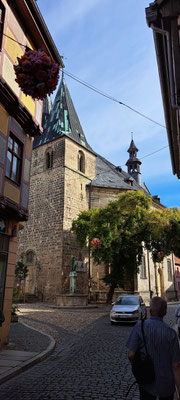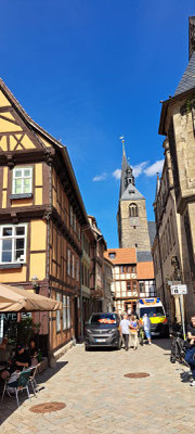 Auf der Rückfahrt machten wir uns ein Bild von Quedlinburg, das seit 1994 als ganze Stadt mit den mehr als 2.000 Fachwerkhäusern aus acht Jahrhunderten und dem Stiftsberg UNESCO-Welterbe ist. Ein herrliches Bilderbuch der Architekturgeschichte das uns sehr kundig nahe gebracht wurde! Für Quedlinburgs Fachwerk kam die deutsche Einheit gerade noch rechtzeitig, um vor dem endgültigen Verfall gerettet zu werden.