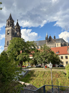Übernachtungsstation war Sachsen-Anhalts Hauptstadt Magdeburg, die sich in ihrer Werbung selbst „ottostadt“ nennt, mit dem ältesten gotischen Dom Deutschlands. Was für ein – leider unbekannter - Baumeister, der sich dort verewigte, mit großem Sinn für Humor und Menschlichkeit, wie wir erfuhren: erinnert sei hier nur an die Figuren der schmunzelnden bis lachenden bzw. klagenden und weinenden schlauen und dummen Mädchen...
